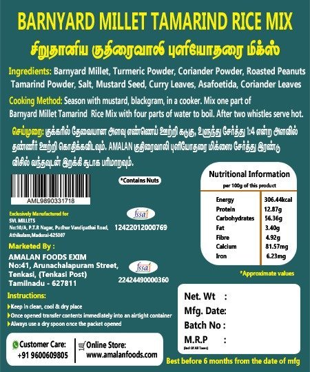 Banyard Millet Tamarind Rice Mix- 250g குதிரைவாலி புளியோதரை மிக்ஸ்
