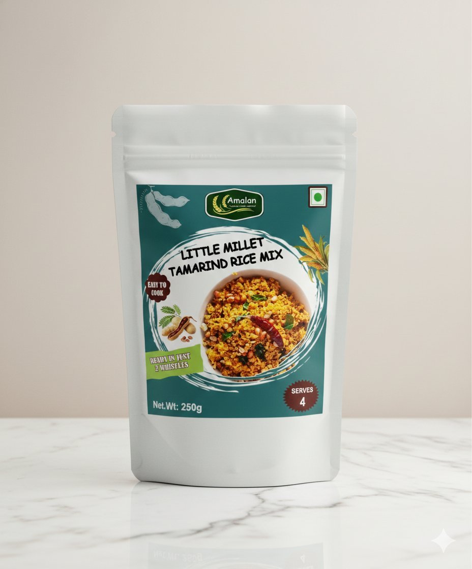 Give your everyday meals a healthy twist with our Little Millet Tamarind Rice Mix. Little millet is known for being gentle on the stomach, rich in fibre, and perfect for clean eating. Combined with a flavourful tamarind base and traditional spices, this mix delivers a dish that is tangy, aromatic, and truly comforting.