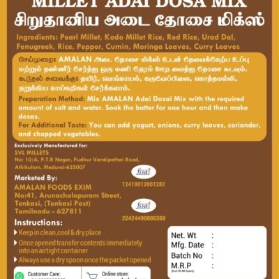 🌾Millet Adai Dosa Mix – Traditional taste. Modern convenience. Relish the authentic taste of South Indian adai dosai made healthier with millets. Amalan Foods Millet Adai Dosai Mix is a carefully balanced blend that helps you prepare crispy, flavourful adai dosais in just minutes—without long soaking or grinding. Perfect for breakfast, dinner, or a wholesome…