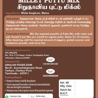 🌾Millet Puttu Mix – Traditional breakfast, made healthier and easier. Puttu is a beloved South Indian breakfast known for its simplicity and comfort. Amalan Foods Millet Puttu Mix brings you the same traditional taste with the goodness of millets, in an easy-to-prepare format. Soft, fluffy and naturally filling, this mix helps you prepare delicious puttu…